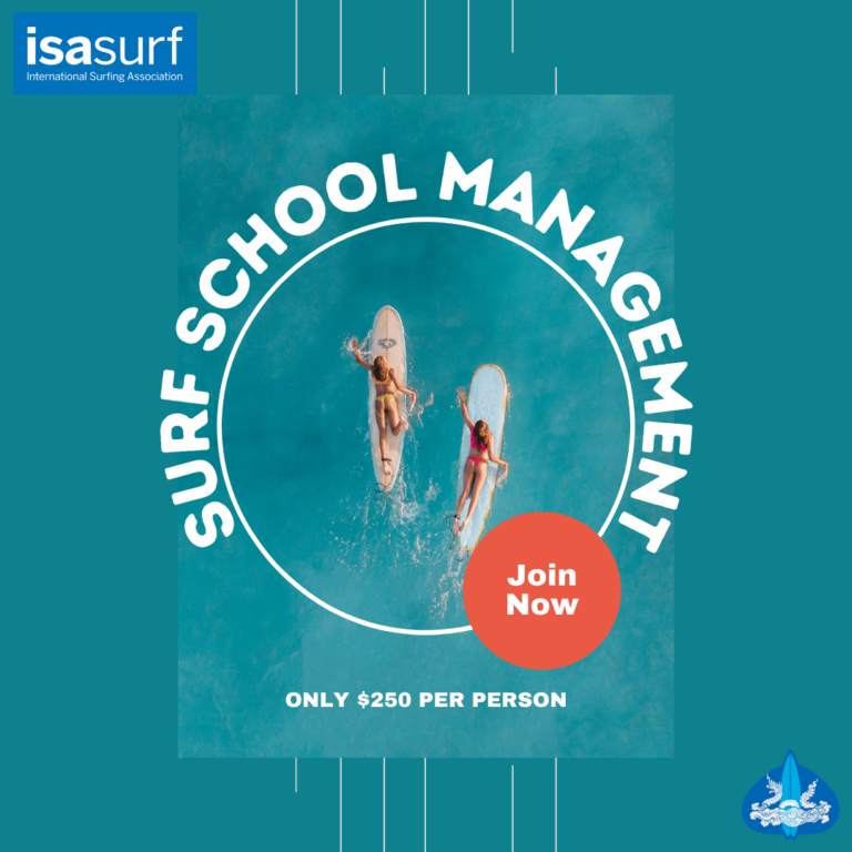 สหพันธ์กีฬากระดานโต้คลื่นนานาชาติ (ISA) และ สมาคมกีฬากระดานโต้คลื่นแห่งประเทศไทย (TSF) ขอเชิญชวนผู้ประกอบการหรือเจ้าของ Surf School และผู้ที่สนใจ เข้าร่วมเรียน หลักสูตรการจัดการโรงเรียนสอนโต้คลื่นของ ISA เพื่อพัฒนาทักษะการบริหารจัดการโรงเรียนสอนโต้คลื่นให้ก้าวหน้าและยั่งยืน