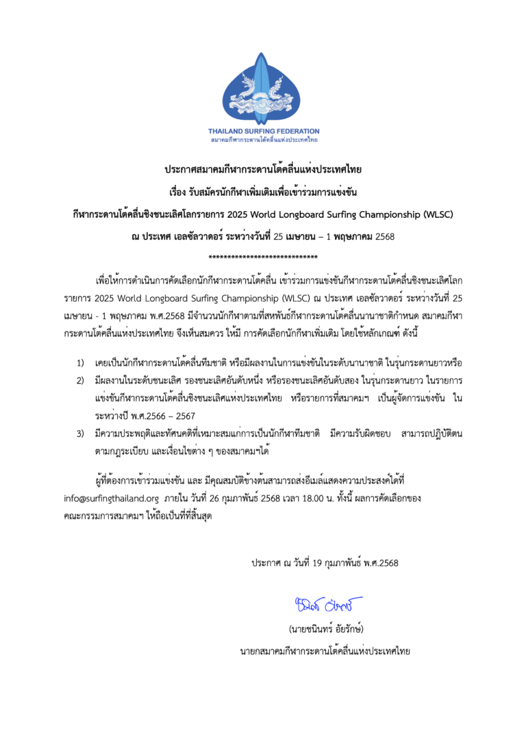 ขอแสดงความยินดีอย่างยิ่งกับนักกีฬากระดานโต้คลื่นเยาวชนของไทย