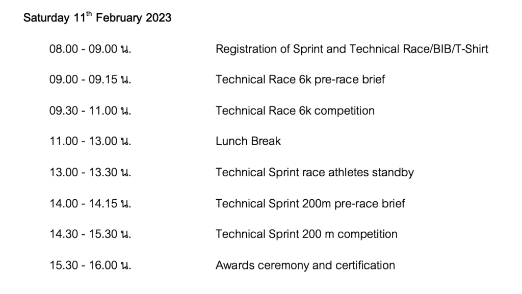 Entry Fee 1,000 THB – Athletes can join both Technical Race and Sprint Race